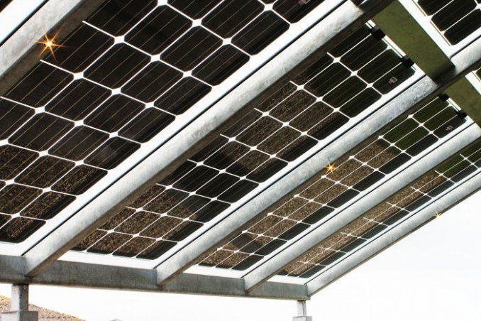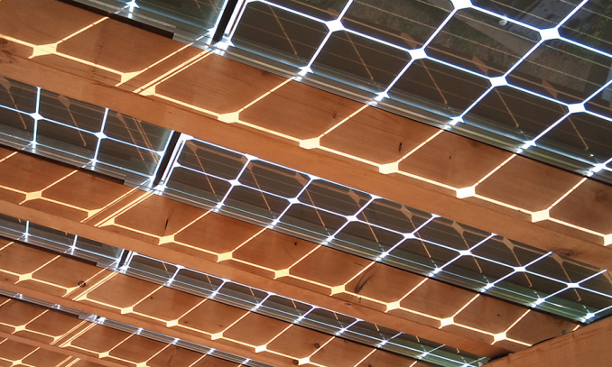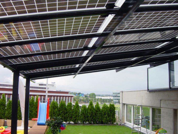 Sistemi installati su strutture con moduli fotovoltaici in vetro semitrasparente